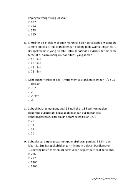 Di harap dengan sedikit perkongsian ini dapat membantu anda sedikit sebanyak gambaran soalan Peperiksaan ONLINE Suruhanjaya Perkhidmatan Awam (SPA) yang sebenar.